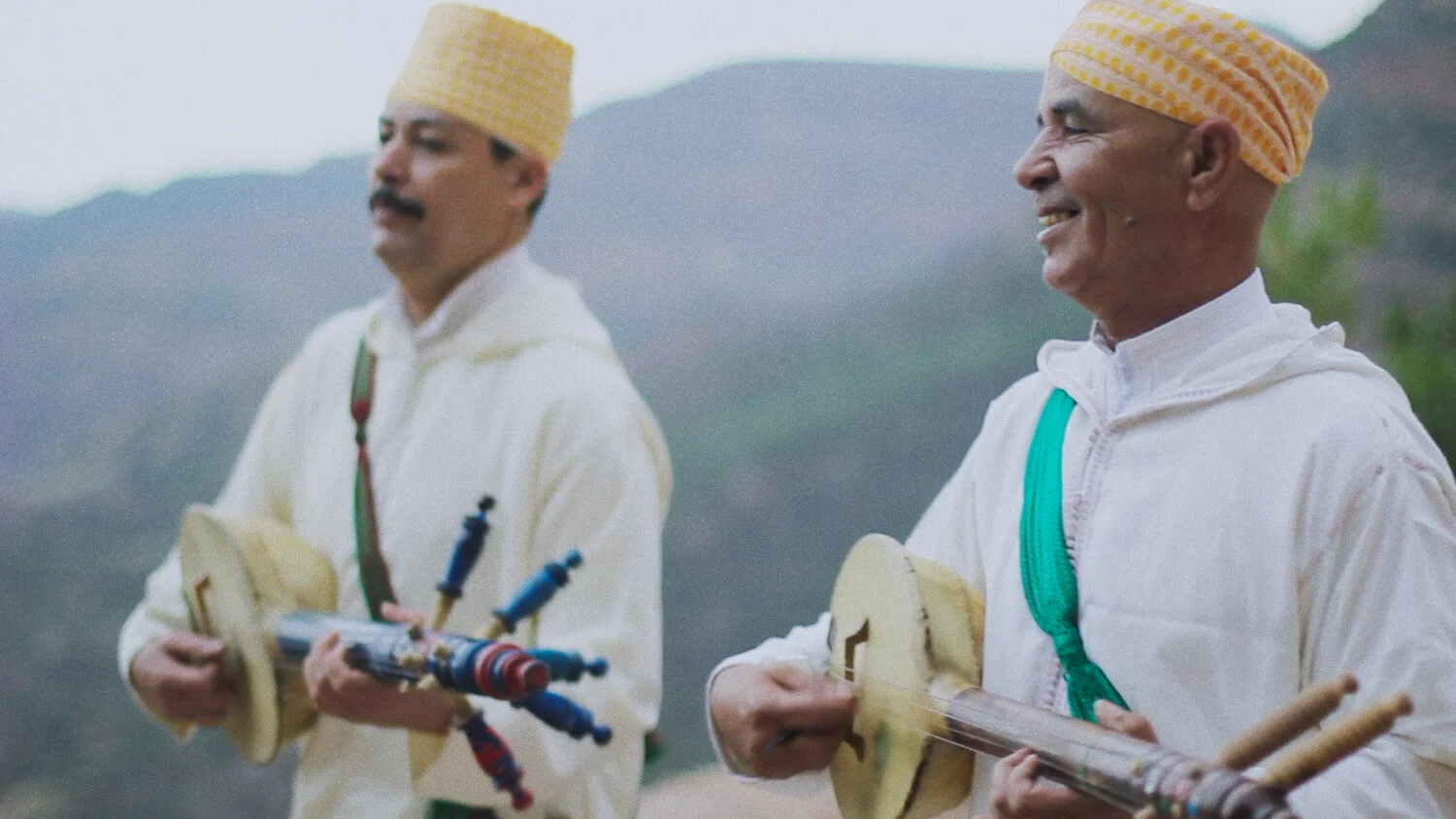 Hailing from Tiznit, Inezgane, Agadir and neighboring villages, Symphonie Lahcen Idhamou is an ensemble of virtuosos dedicated to the transmission of traditional Amazigh songs typical of the Souss Massa region in Morocco, called music of the Rways - plural of Rays (masculine) and Raysa (feminine). A Rays or Raysa is primarily a poet, then a musician, composer, and choreographer. While there exists a vast repertoire of Rways texts, melodies, rhythms, and dances, no two performances are ever identical. The Rways will improvise together, depending on the context and inspiration, which traditionally have ranged from family celebrations to community ceremonies to national celebrations and annual popular gatherings known as “Moussem.” The common themes evoked include a celebration of life, the vagaries of nature, the agricultural seasons, spirituality, and unrequited love.