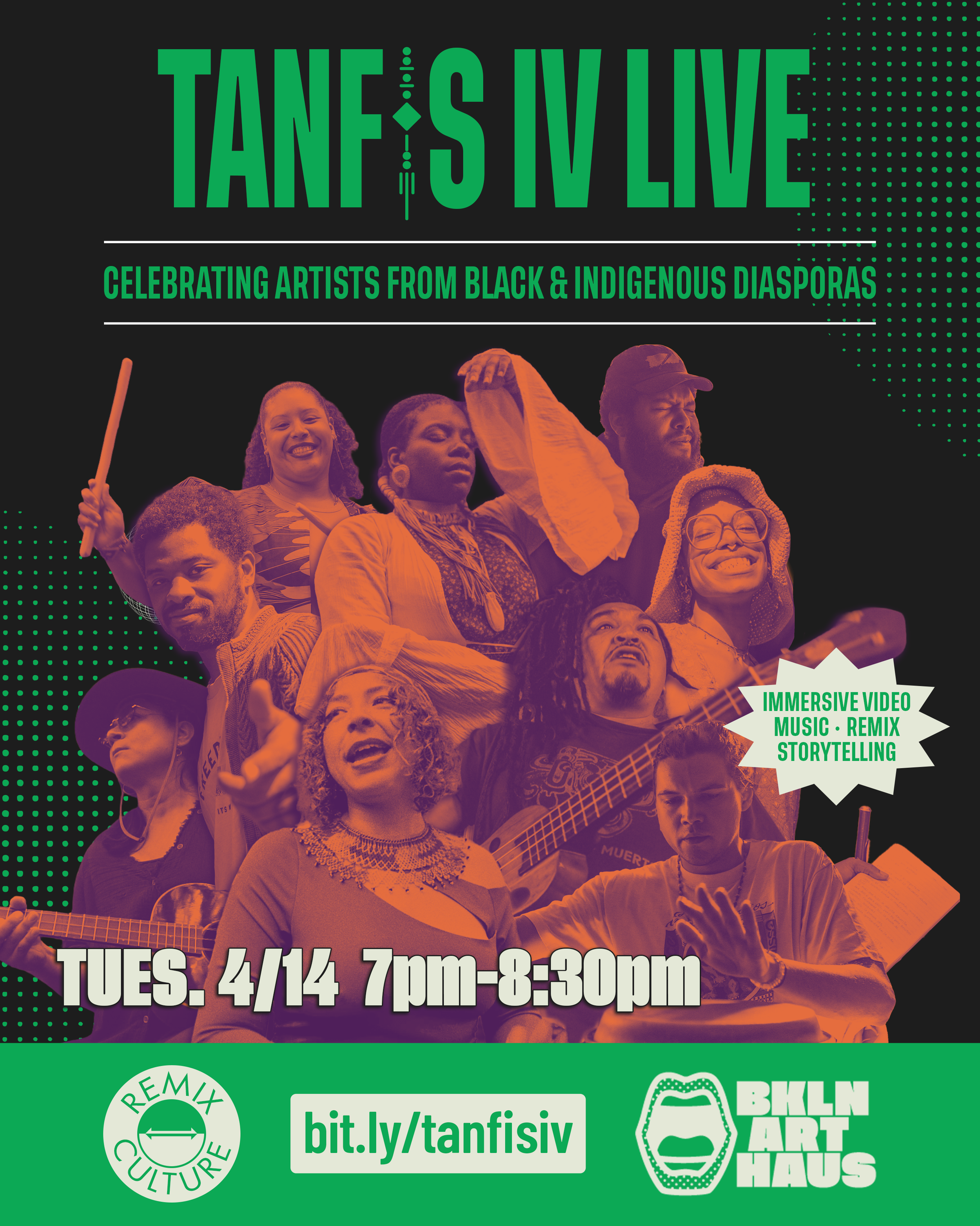 Following a stunning premiere in Upstate New York, Remix ⟷ Culture is proud to bring Tanfis IV Live to Brooklyn. This 90-minute immersive experience features nine acclaimed NY-based performing artists—traditional musicians, remix artists, and storytellers—honoring and re-imagining their Black and Indigenous lineages.